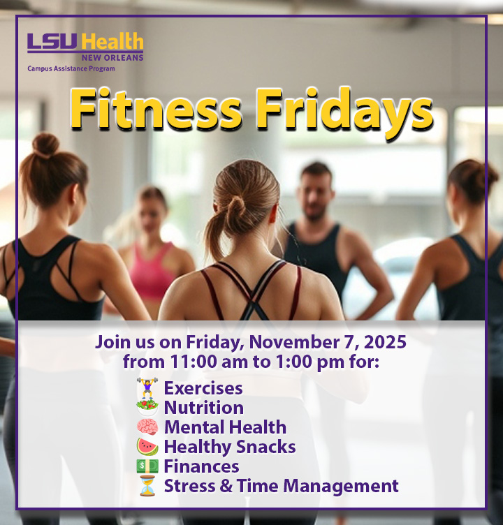 Join Fitness Fridays every first Friday of the month at the LSUHSC Wellness Center.