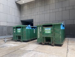 LSUHSC also has two green dumpsters located between the Allied Health/Nursing and the Medical Education Buildings (see photos and map below) that accept the following materials: paper, cardboard, plastic, and aluminum